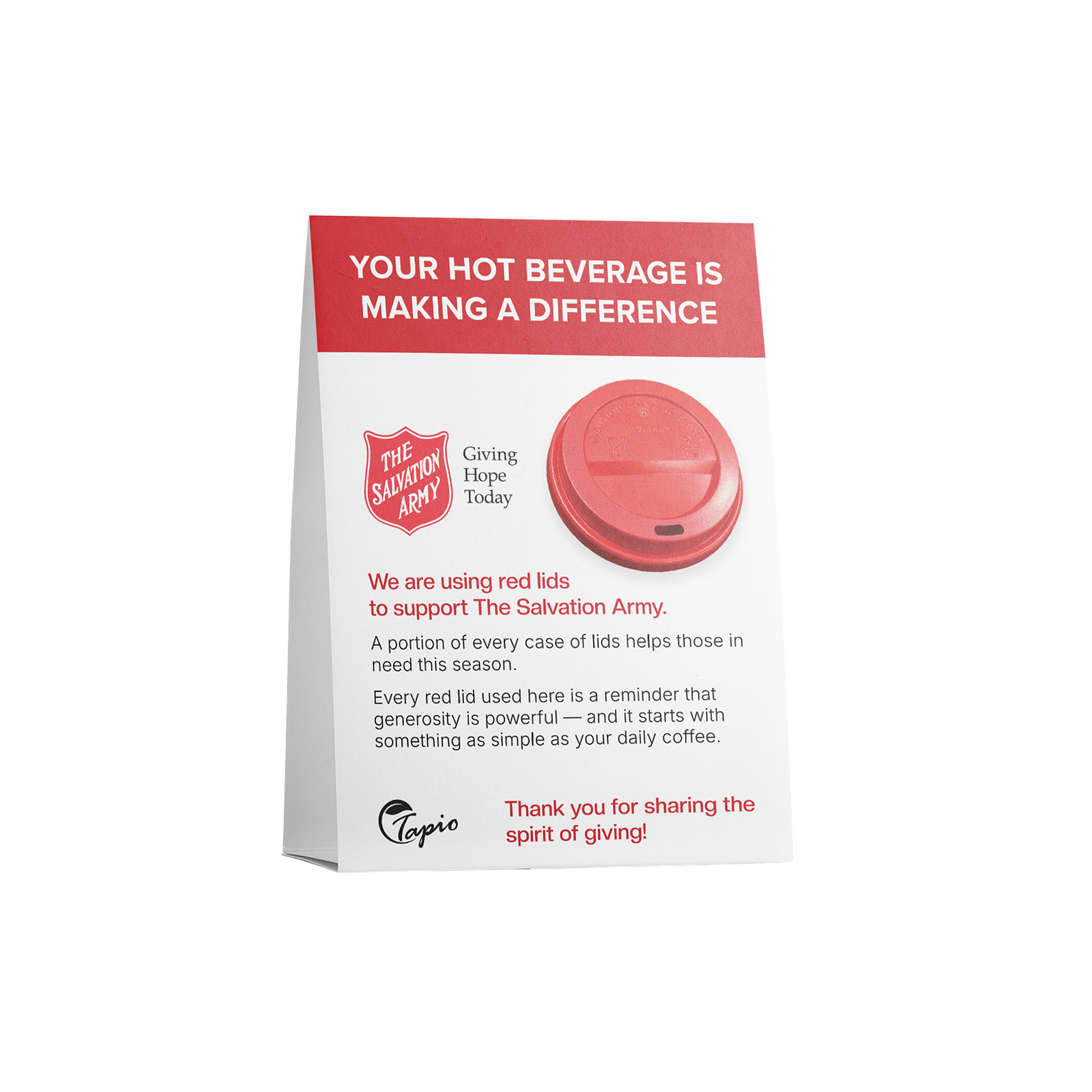 A portion of the proceeds from each case of red lids will be donated to The Salvation Army to support the community.